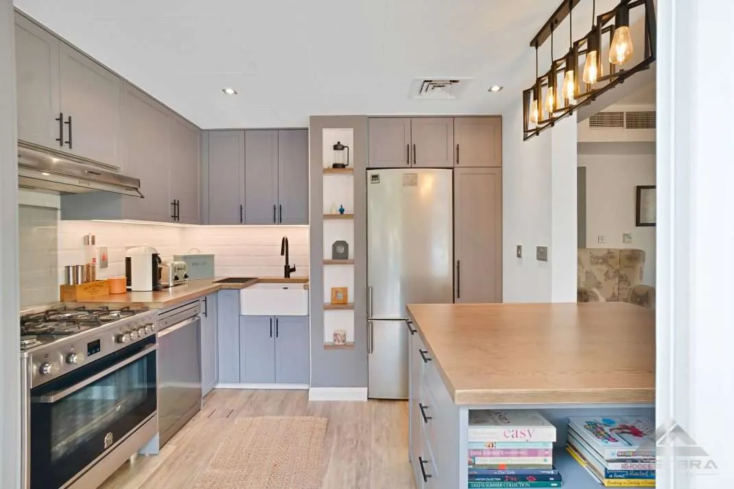 Maximize space with pull-out shelves, corner units, and clever organizers—perfect for Dubai’s urban living. (kitchen storage ideas Dubai, small kitchen solutions Dubai)